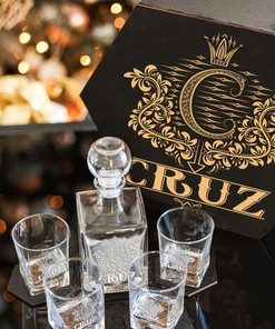 CRUZ – WHISKEY SET (Wooden box + Decanter + 4 Glasses + 4 Coasters)