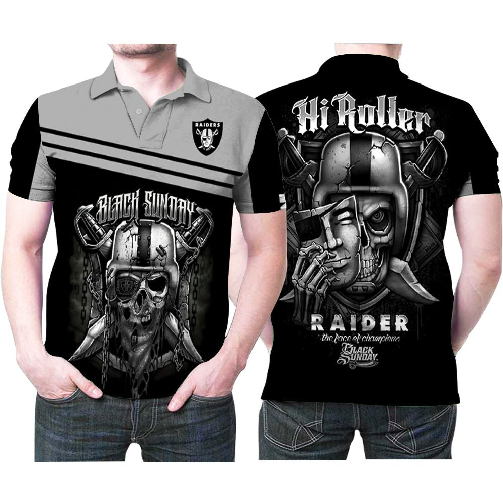 Las Vegas Raiders Black Sunday Hi Roller Skull The Face Of Champions Printed Gift For Las Vegas Raiders Fan Polo Shirt