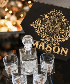 MASON – WHISKEY SET (Wooden box + Decanter + 4 Glasses + 4 Coasters)